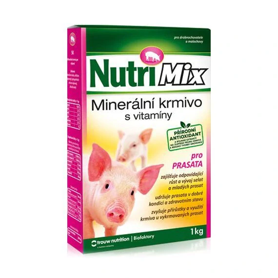 Nedostatečná nebo nevyvážená krmná dávka pro prasata v odchovu nebo ve výkrmu má za následek snížené přírůstky, nižší využitelnost krmiva, menší životaschopnost a horší zdravotní stav. Nutrimix pro prasata je určen na doplnění minerálních látek a vitaminů do krmných dávek pro odstavená selata a vykrmovaná prasata v drobnochovech. Podporuje dosažení vysokých přírůstků, využití přijatých živin a zajišťuje odpovídající zdravotní stav. Přidává se do krmné dávky, která je založena na obilných šrotech nebo jiných neplnohodnotných krmivech, popř. kuchyňských zbytcích atd.